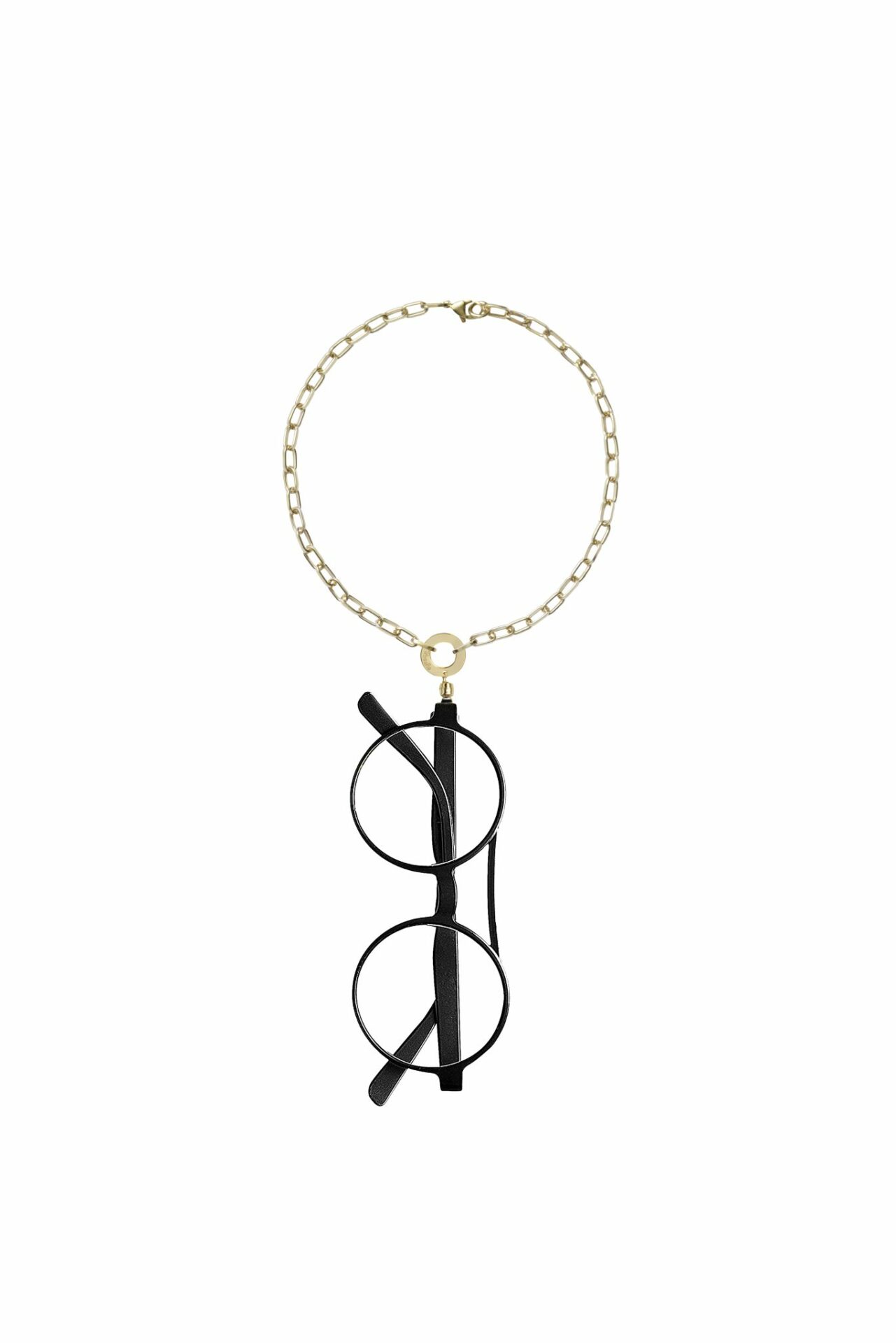 Collana portaocchiali in alluminio e ottone.